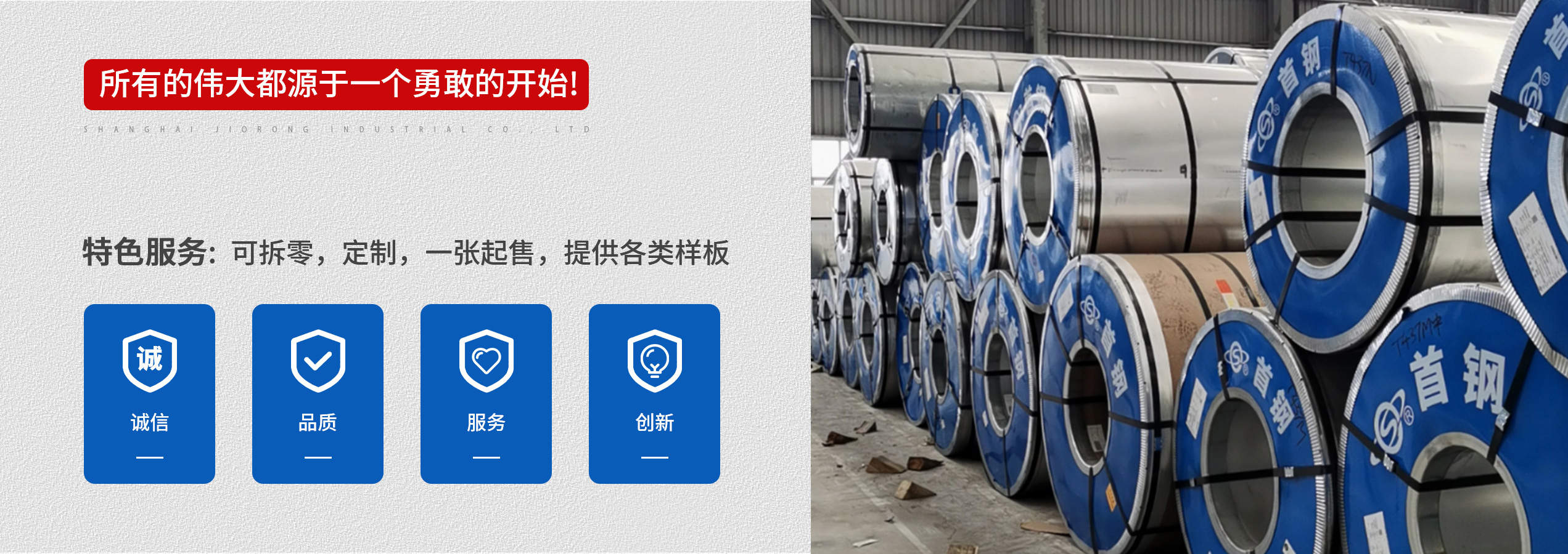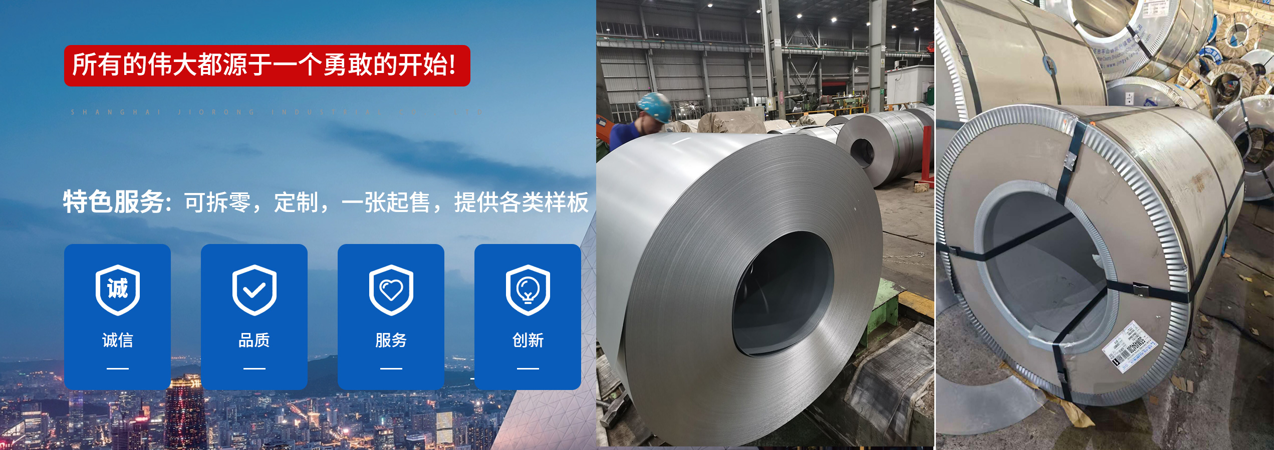 上海九容实业有限公司专注于热镀锌板材供应与精密加工服务的实业企业